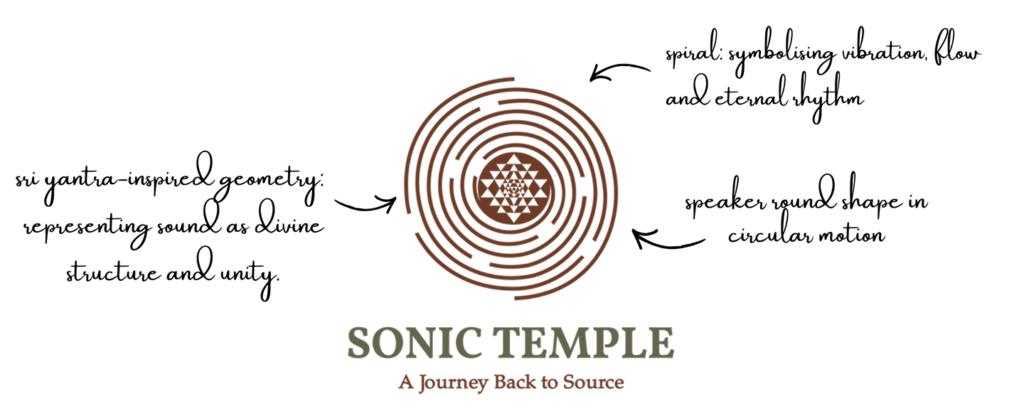 The Sonic Temple holistic logo design is an overall synthesis of spiral, sacred geometry and speaker form, to express sound as vibration and structure.